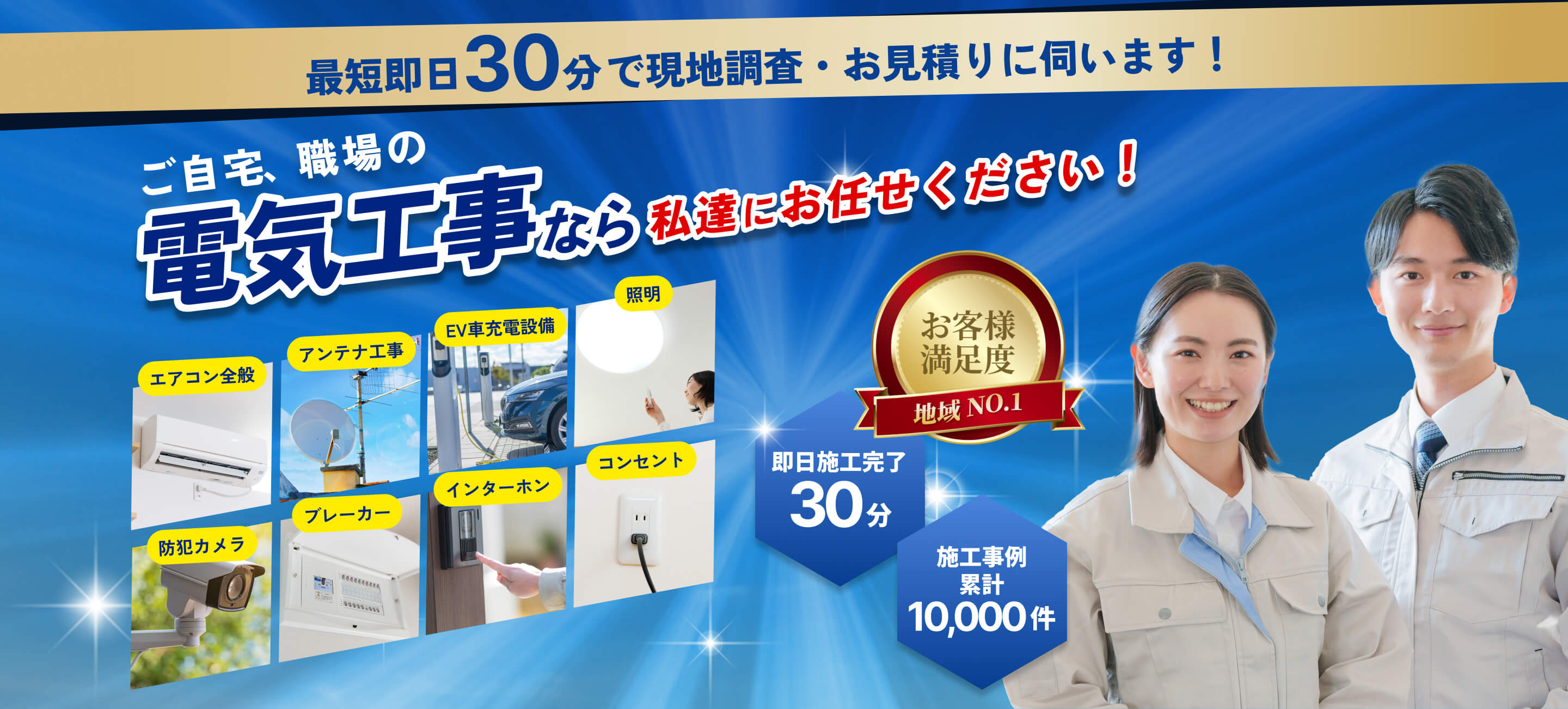 自社スタッフが最初から最後まで責任を持って対応致します。電気修理の品質はもちろんのこと、接客品質も地域NO.1を目指しております。ご自宅の電気修理のことなら、入間電気工事店にご相談ください。